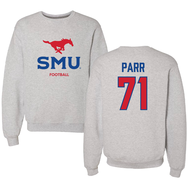 Southern Methodist University Football Light Gray Crewneck - #71 Logan Parr