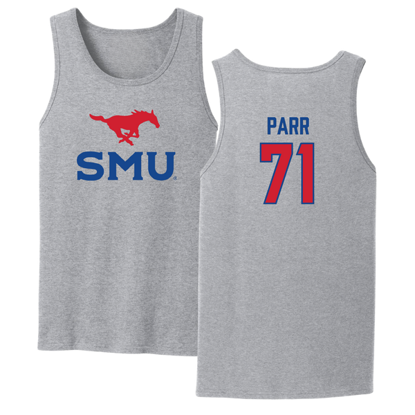 Southern Methodist University Football Sport Gray Tank Top - #71 Logan Parr