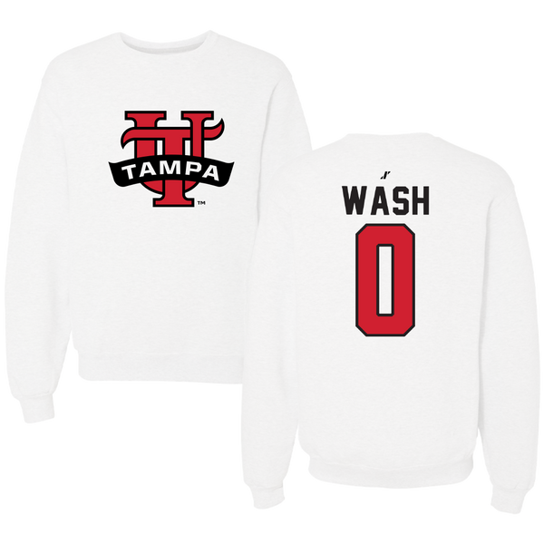 University of Tampa Baseball White Crewneck - #0 Logan Wash