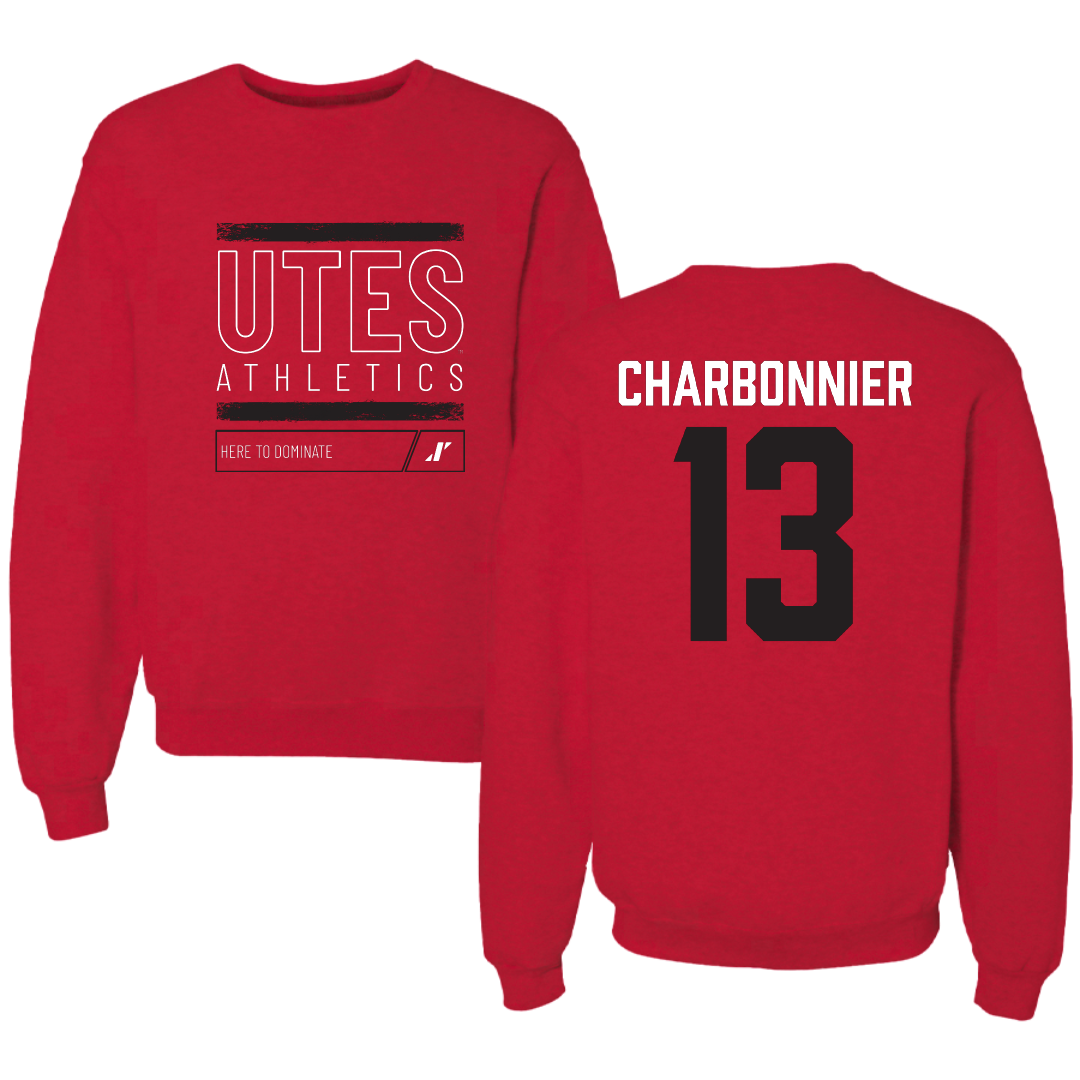 University of Utah Lacrosse Red Dominate Crewneck - #13 Luc Charbonnier