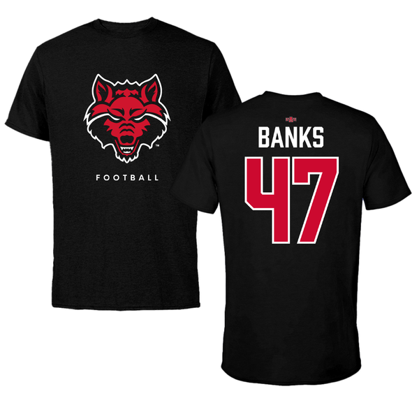 Arkansas State University Football Black Tee - #47 Lucas Banks