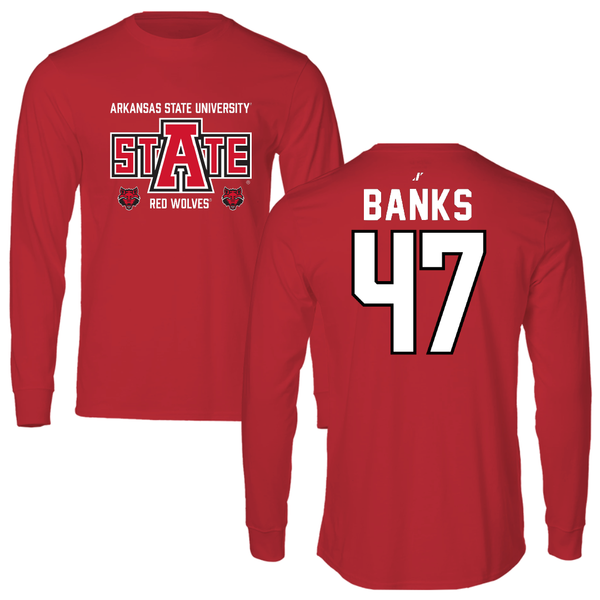 Arkansas State University Football Red Long Sleeve - #47 Lucas Banks