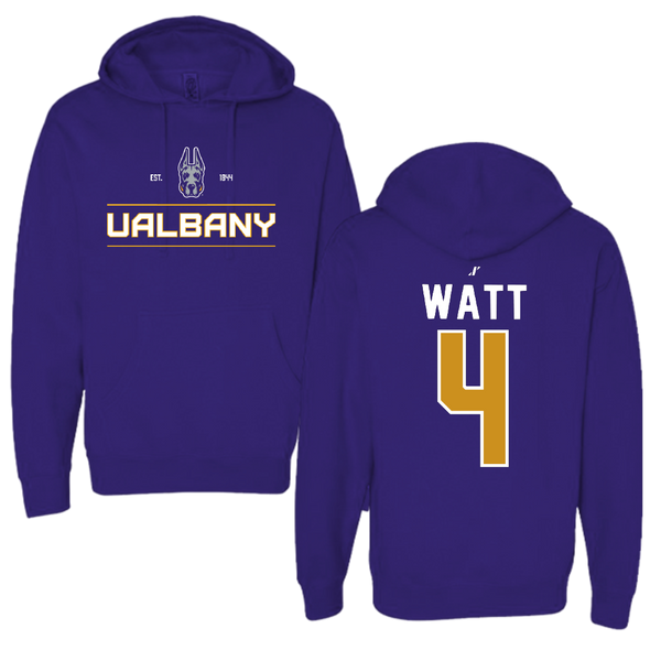 University at Albany Soccer Purple General Hoodie - #4 Lucas Watt