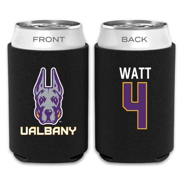 University at Albany Soccer Black Can Cooler - #4 Lucas Watt