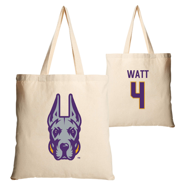 University at Albany Soccer Tan Canvas Tote Bag - #4 Lucas Watt