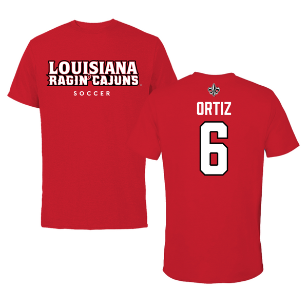 University of Louisiana at Lafayette Soccer Red Tee - #6 Lucy Ortiz