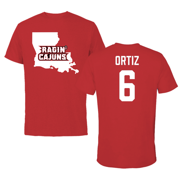 University of Louisiana at Lafayette Soccer Red State Tee - #6 Lucy Ortiz