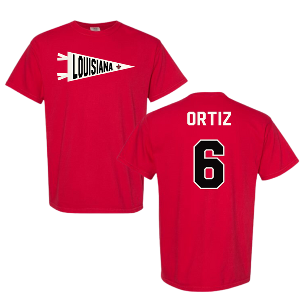 University of Louisiana at Lafayette Soccer Red Pennant Comfort Colors Tee - #6 Lucy Ortiz