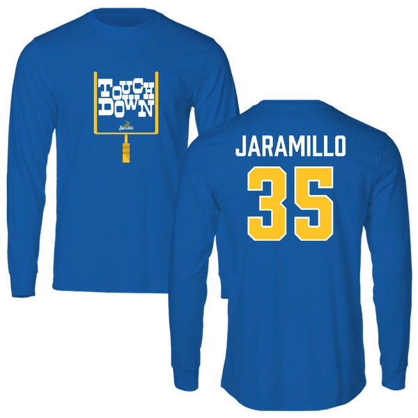 Texas A&M University-Kingsville Football Blue Touchdown Long Sleeve - #35 Luis Jaramillo