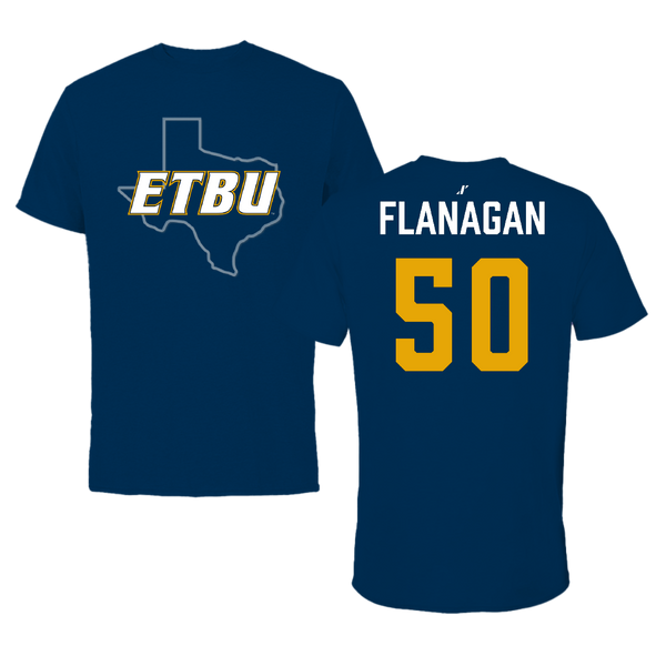 East Texas Baptist University Baseball Navy State Tee - #50 Luke Flanagan