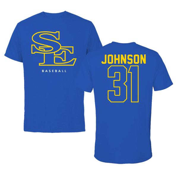 Southeastern Oklahoma State University Baseball Blue Tee - #31 Luke Johnson