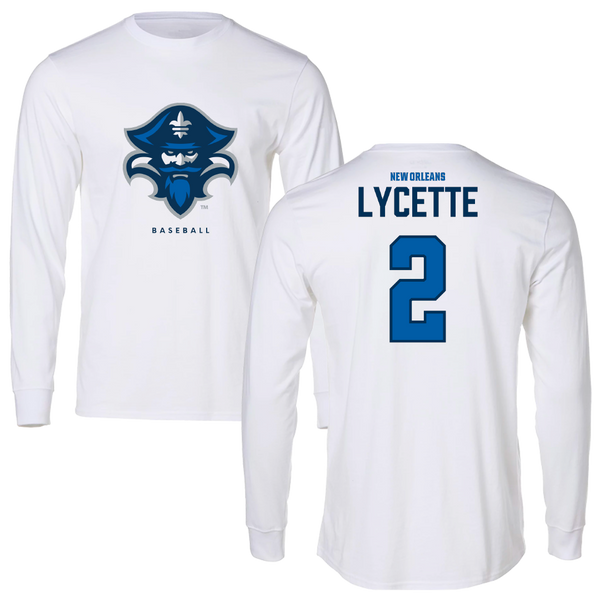 University of New Orleans Baseball White Long Sleeve - #2 Luke Lycette