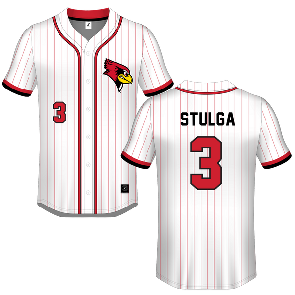 Illinois State University White Pinstripe Button-Down Jersey - #3 Luke Stulga