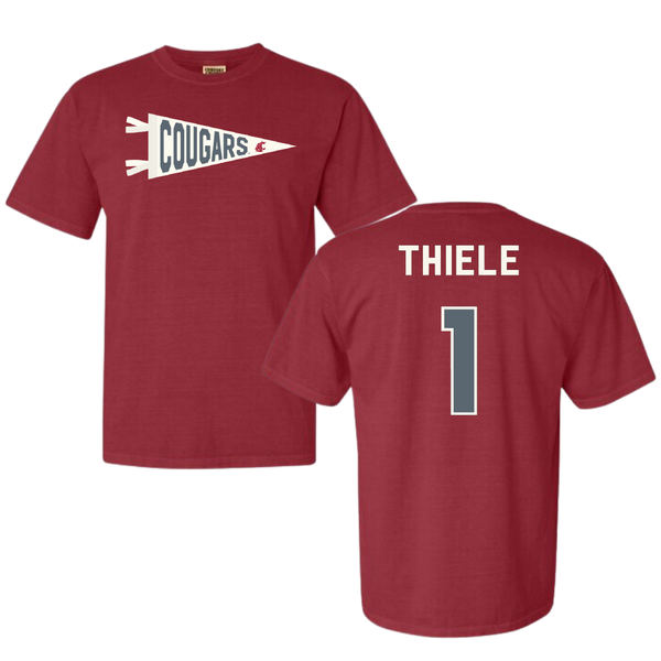 Washington State University Baseball Cardinal Pennant Comfort Colors Tee - #1 Luke Thiele