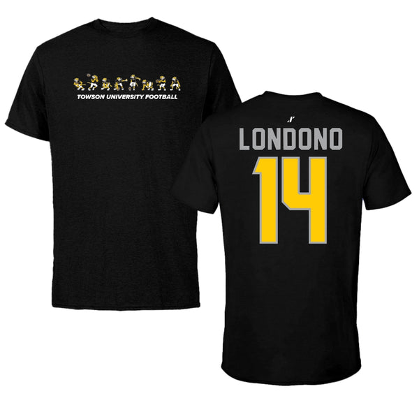 Towson University Football Black Cartoon Doc Team Tee - #14 Lukkas Londono
