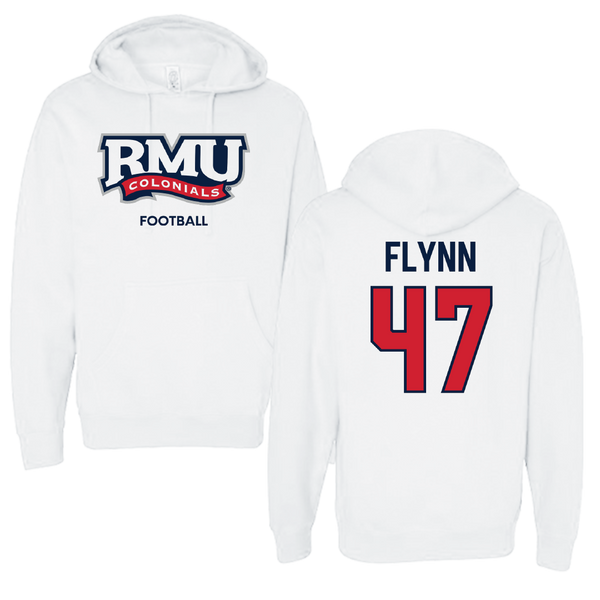 Robert Morris University Football White Classic Hoodie - #47 Mack Flynn