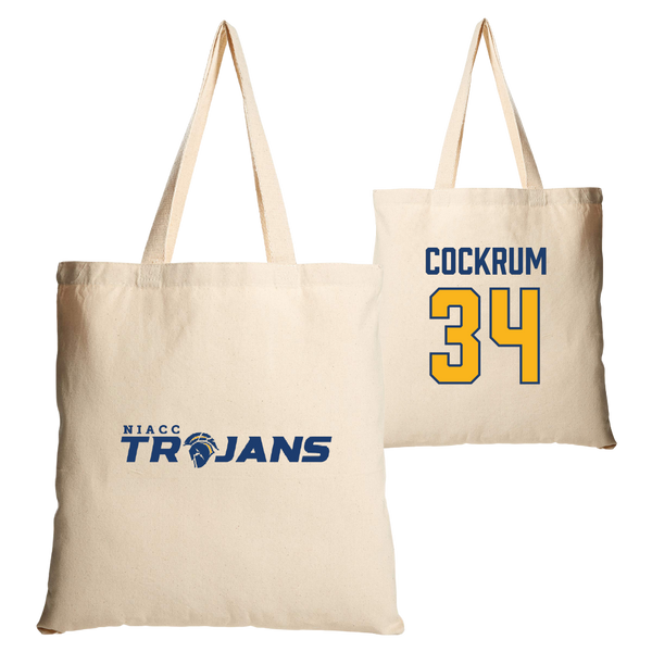 North Iowa Area Community College Baseball Tan Canvas Tote Bag - #34 Maddox Cockrum