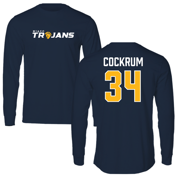 North Iowa Area Community College Baseball Navy Long Sleeve - #34 Maddox Cockrum
