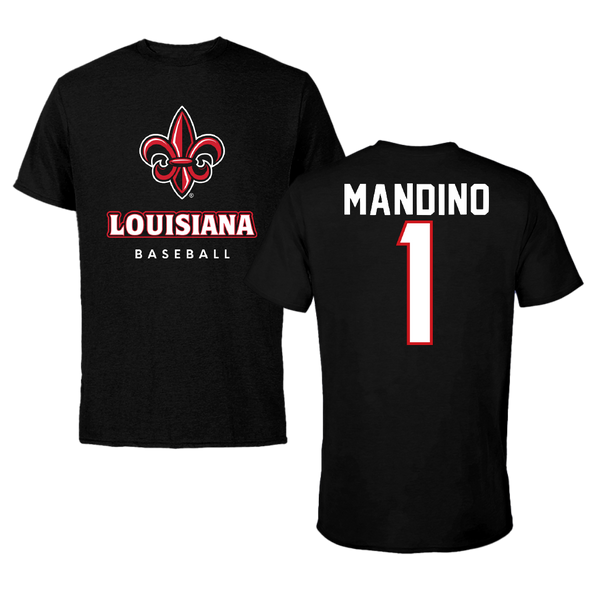 University of Louisiana at Lafayette Baseball Black Tee - #1 Maddox Mandino