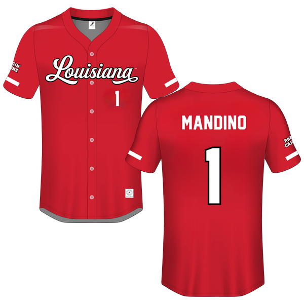 University of Louisiana at Lafayette Red Button-Down Jersey - #1 Maddox Mandino