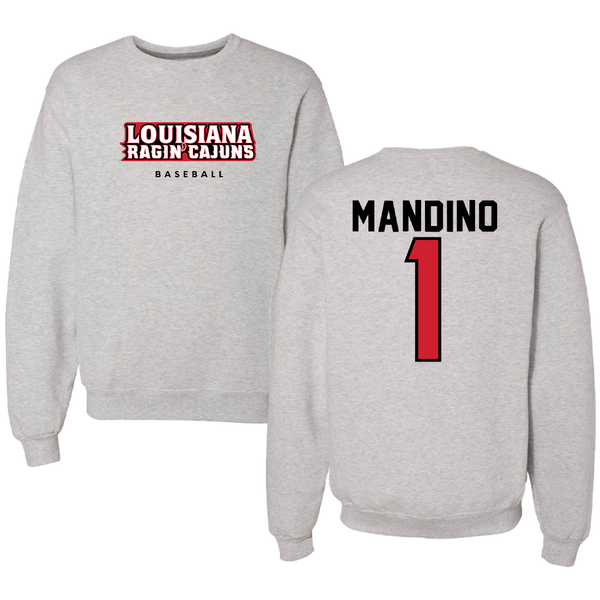 University of Louisiana at Lafayette Baseball Gray Crewneck - #1 Maddox Mandino