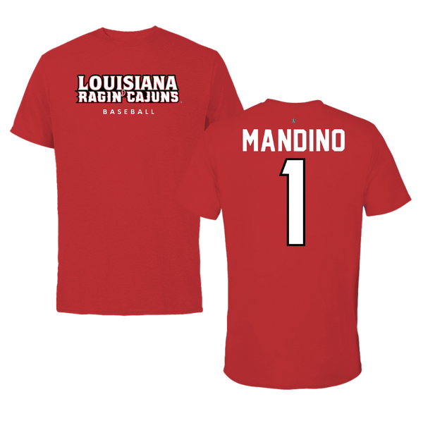 University of Louisiana at Lafayette Baseball Red Tee - #1 Maddox Mandino
