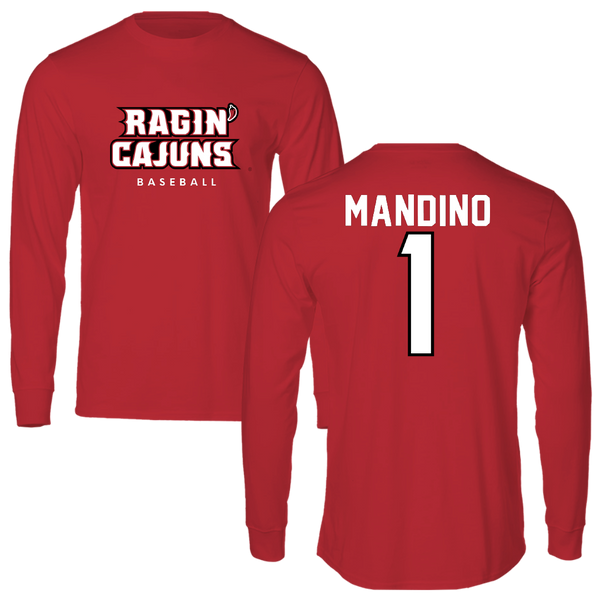 University of Louisiana at Lafayette Baseball Red Long Sleeve - #1 Maddox Mandino