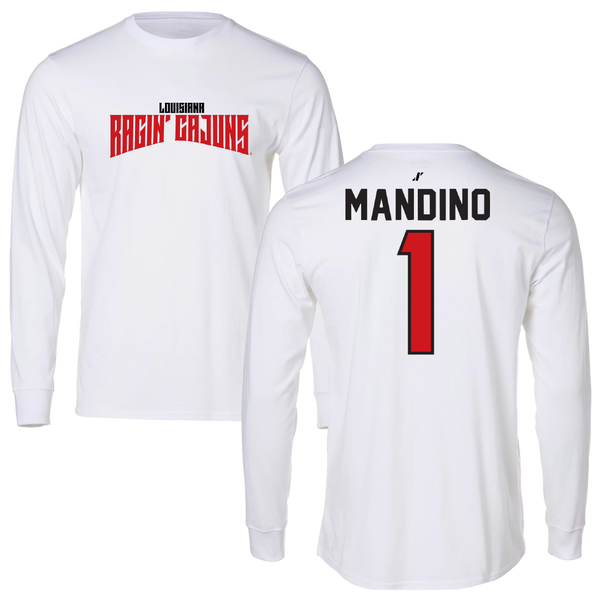 University of Louisiana at Lafayette Baseball White Classic Long Sleeve - #1 Maddox Mandino