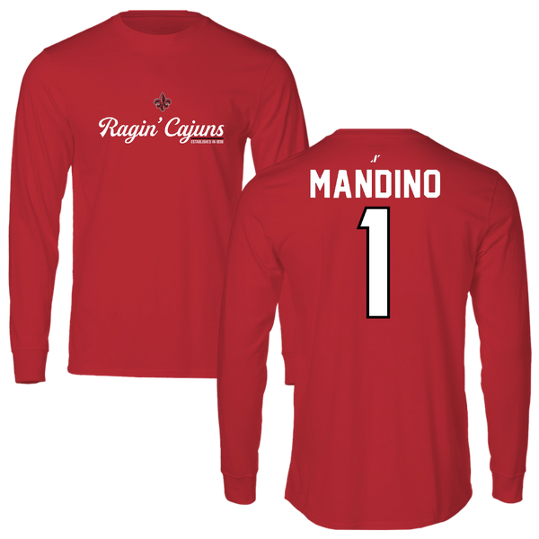 University of Louisiana at Lafayette Baseball Red Performance Long Sleeve - #1 Maddox Mandino