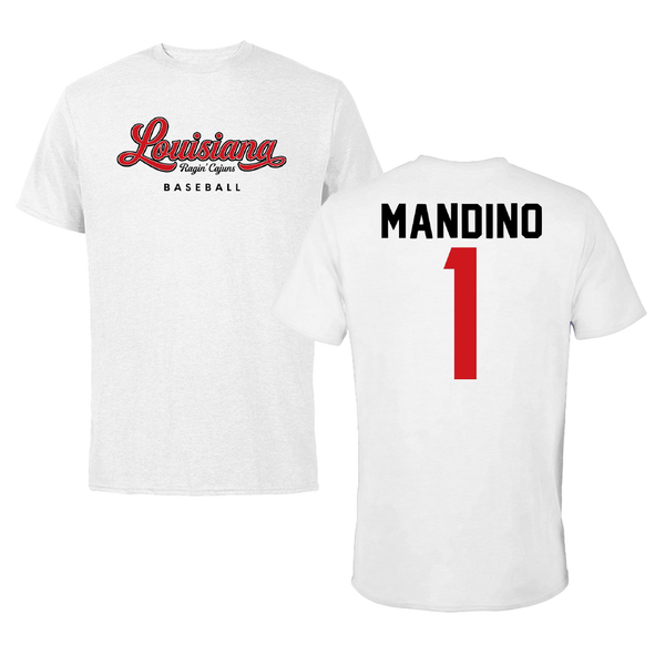 University of Louisiana at Lafayette Baseball White Classic Tee - #1 Maddox Mandino