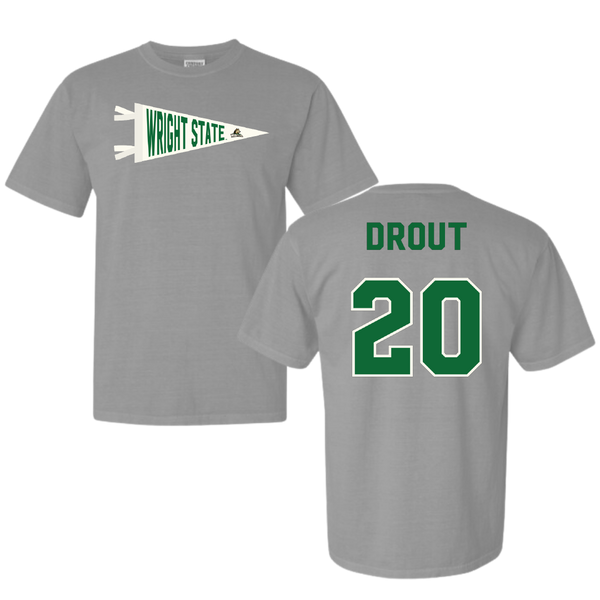 Wright State University Basketball Light Gray Pennant Comfort Colors Tee - #20 MaKenzie Drout