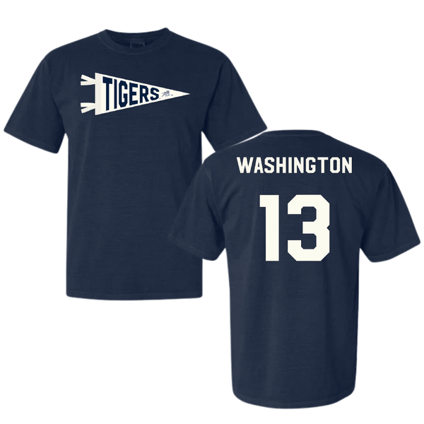 Jackson State University Volleyball Navy Pennant Comfort Colors Tee - #13 Makenzie Washington