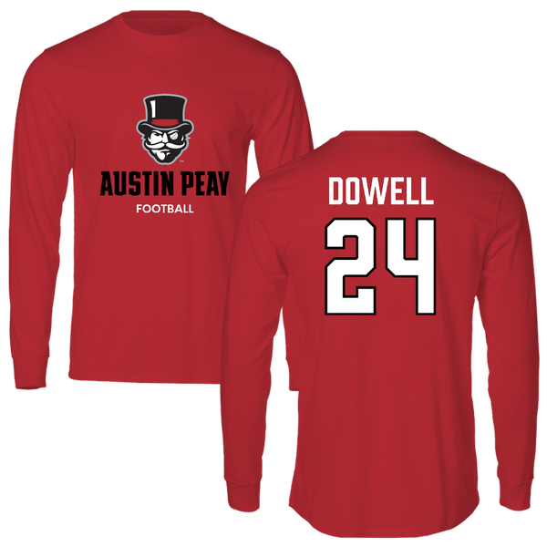 Austin Peay State University Football Red General Long Sleeve - #24 Malaki Dowell