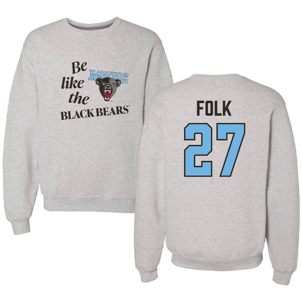 University of Maine Football Light Gray Be Like Us Crewneck - #27 Malcolm Folk