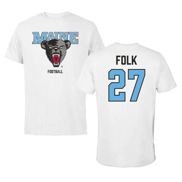 University of Maine Football White Classic Tee - #27 Malcolm Folk