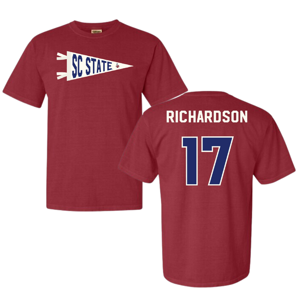 South Carolina State University Football Crimson Pennant Comfort Colors Tee - #17 Malik Richardson