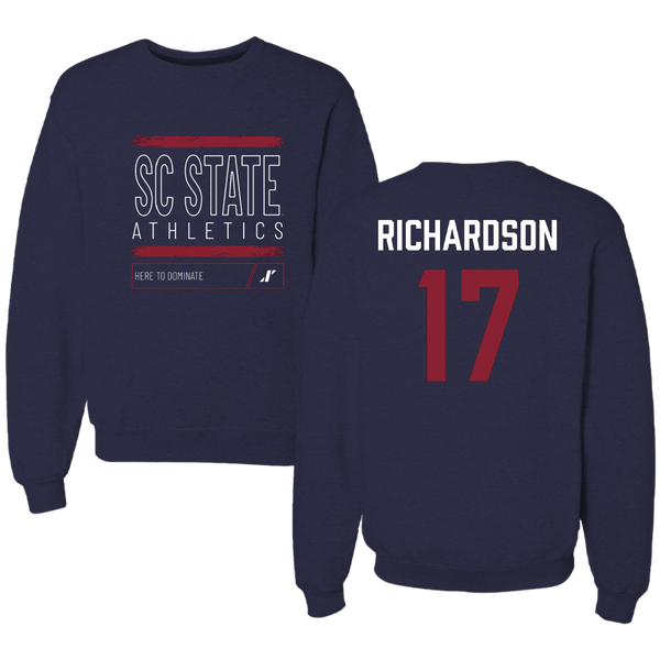 South Carolina State University Football Navy Dominate Crewneck - #17 Malik Richardson