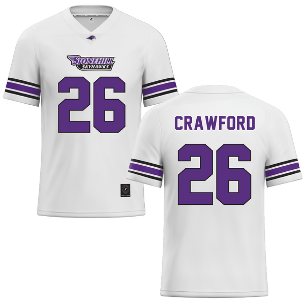 Stonehill College White Football Jersey - #26 Marcus Crawford