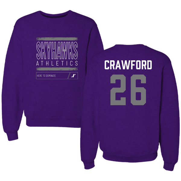 Stonehill College Football Purple Dominate Crewneck - #26 Marcus Crawford