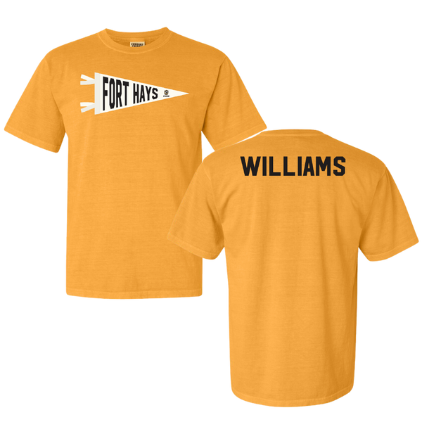 Fort Hays State University Football Gold Pennant Comfort Colors Tee - Marquis Williams