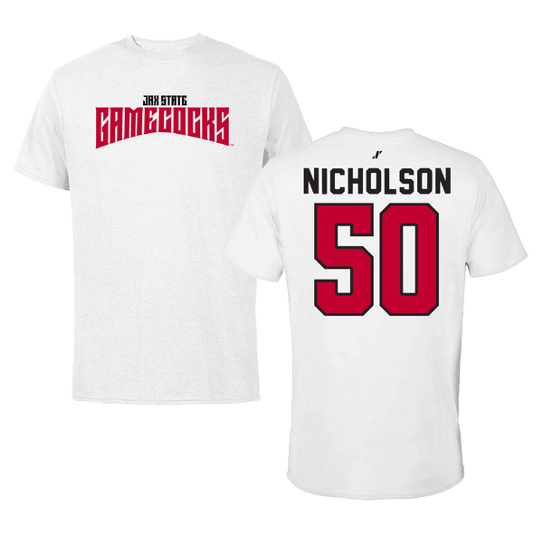 Jacksonville State University Basketball White Tee - #50 Mason Nicholson
