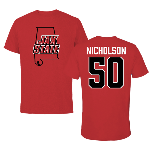 Jacksonville State University Basketball Red State Tee - #50 Mason Nicholson