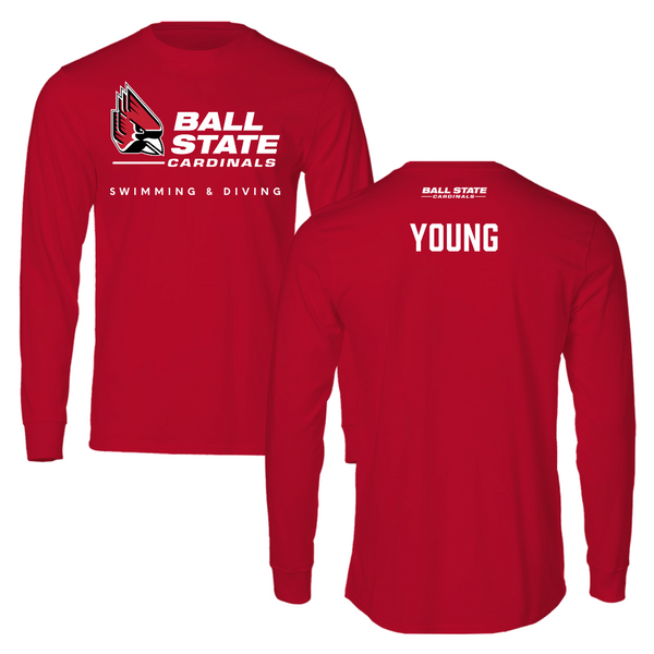 Ball State University Swimming & Diving Red Long Sleeve - Mason Young