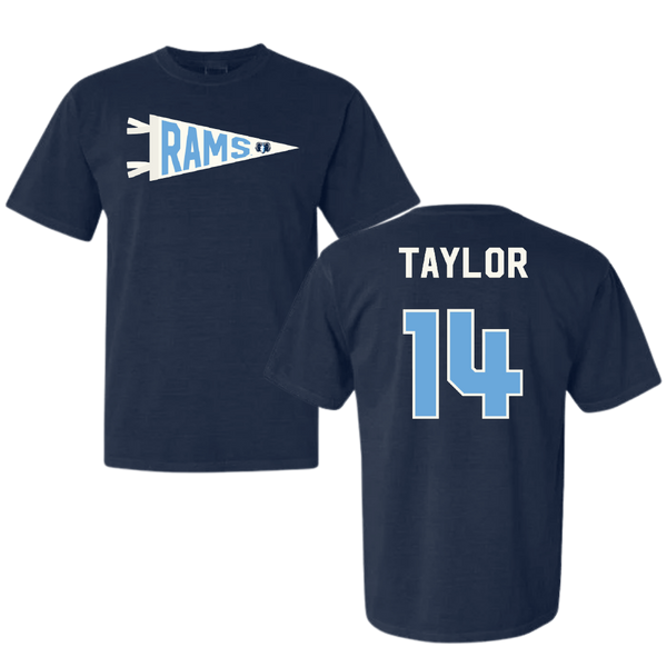 University of Rhode Island Soccer Navy Pennant Comfort Colors Tee - #14 Mathias Taylor