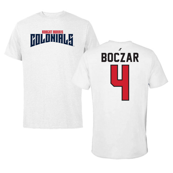 Robert Morris University Ice Hockey White Classic Tee - #4 Matt Boczar