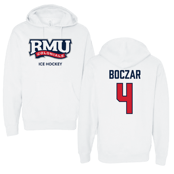 Robert Morris University Ice Hockey (M) White Colonials Hoodie - #4 Matt Boczar