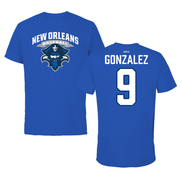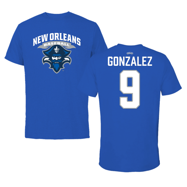 University of New Orleans Baseball Blue Mascot Tee - #9 Matt Gonzalez