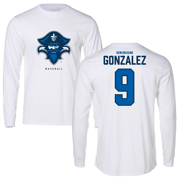 University of New Orleans Baseball White Long Sleeve - #9 Matt Gonzalez