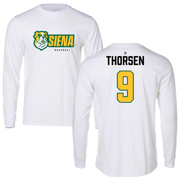 Siena University Baseball White Classic Long Sleeve - #9 Matt Thorsen
