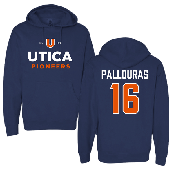 Utica University Football Navy Hoodie - #16 Matthew Pallouras